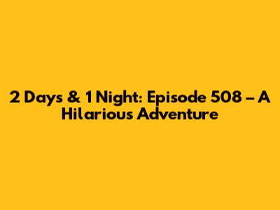 Hey everyone! Are you ready to dive into the fun and games of 2 Days & 1 Night Episode 508? This episode was an absolute blast, packed with laughter, challenges, and the usual shenanigans that make this show so beloved. In this article, we'll break down all the highlights, memorable moments, and why this episode is a must-watch for any fan. So, buckle up, grab your snacks, and let's get into it! This episode, like many others, focused on the camaraderie and competitive spirit among the cast members. The tasks and games were designed not just to entertain viewers, but also to test the members' teamwork, problem-solving skills, and, of course, their ability to endure some seriously goofy situations. These challenges often lead to unexpected outcomes, funny blunders, and moments of genuine connection between the cast, which is what makes 2 Days & 1 Night such a heartwarming show. Episode 508 was no exception, offering a perfect blend of physical challenges, mental puzzles, and the unpredictable nature of the show's format. The beauty of 2 Days & 1 Night lies in its simplicity. It's a show that relies on the natural charisma of its cast, the spontaneity of the situations they find themselves in, and the genuine reactions that follow. The producers do a fantastic job of creating scenarios that are both entertaining and challenging, pushing the members to their limits while allowing their personalities to shine. This episode, like the others, was a masterclass in how to create engaging content that appeals to a wide audience. It wasn't just about the tasks themselves, but also about the journey, the struggles, and the triumphs that the cast experienced together. So, let's explore all the details and why this particular episode was so special, making it a memorable experience for both the cast and the viewers. The essence of the show is perfectly captured in episodes like this one, offering a balanced mix of fun, competition, and genuine human connection.