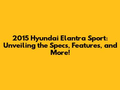 2015 Hyundai Elantra Sport: Specs, Features & More!