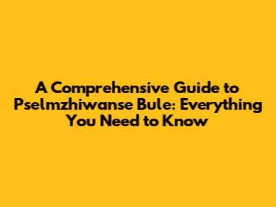 A Comprehensive Guide To Pselmzhiwanse Bule: Everything You Need To Know