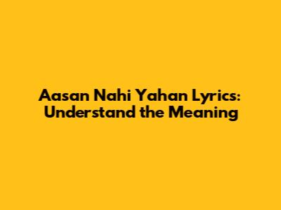 Aasan Nahi Yahan Lyrics: Understand The Meaning