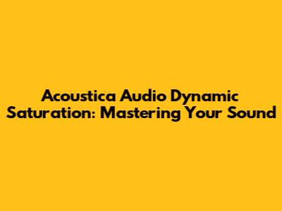 Hey guys! Ever wondered how to get that professional sound in your music, podcasts, or any audio project? Well, you've probably stumbled upon the world of dynamic saturation. And if you're looking to dive deep into this technique, especially with the power of Acoustica Audio plugins, you're in the right place. We're going to break down everything you need to know about dynamic saturation, why it's a game-changer, and how to harness its magic. Get ready to elevate your audio game! This comprehensive guide will explore the ins and outs of dynamic saturation using the Acoustica Audio plugins. We'll cover what it is, how it works, the benefits, and practical tips to help you achieve the sound you've always dreamed of. Let's start with a foundational understanding of what dynamic saturation actually is.