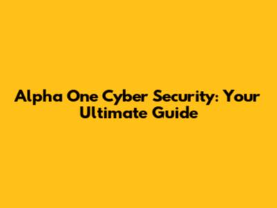 Alpha One Cyber Security: Your Ultimate Guide