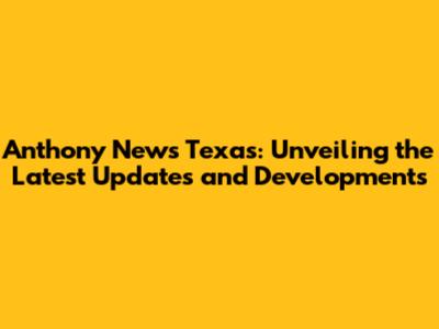 Anthony News Texas: Latest Updates And Developments