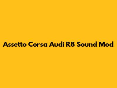 Are you an Assetto Corsa enthusiast looking to inject some serious auditory adrenaline into your virtual racing experience? Do you love the Audi R8, but feel the in-game sound doesn't quite capture the raw, visceral roar of its engine? Well, you're in the right place, guys! This article dives deep into the world of Assetto Corsa Audi R8 sound mods, exploring why they're essential, what makes a great sound mod, and highlighting some of the best options available to elevate your sim racing immersion to the next level. Let's get started and make your virtual R8 scream!