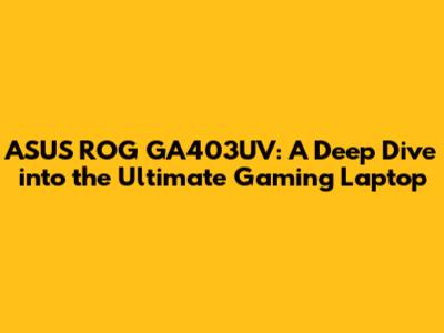 ASUS ROG GA403UV: A Deep Dive Into The Ultimate Gaming Laptop