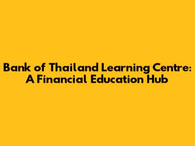 Bank Of Thailand Learning Centre: A Financial Education Hub