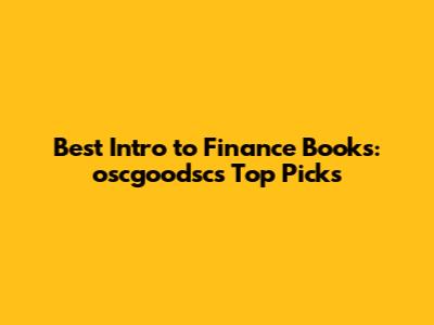 Best Intro To Finance Books: Oscgoodsc's Top Picks