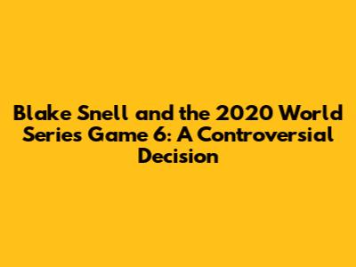 Blake Snell's Controversial Exit: 2020 World Series Game 6