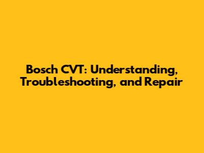 Bosch CVT: Understanding, Troubleshooting, And Repair