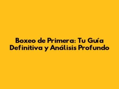 Boxeo De Primera: Guía Completa Y Análisis Profundo