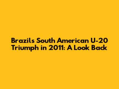 Hey guys, let's dive into a blast from the past, shall we? We're going to revisit the South American U-20 Championship of 2011, a tournament where Brazil showcased their footballing prowess and took home the crown. This competition, held in Peru, was a significant event for young talents aiming to make their mark on the footballing world. It provided a platform for future stars to shine, and for established academies to display their nurturing capabilities. The 2011 tournament was particularly memorable, and so let's unpack all the details, from the key players to the defining moments. Buckle up, because we're about to journey back in time to relive the excitement.