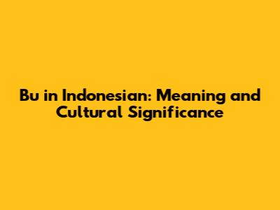 Bu In Indonesian: Meaning And Cultural Significance