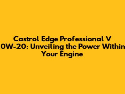 Understanding the Castrol Edge Professional V 0W-20