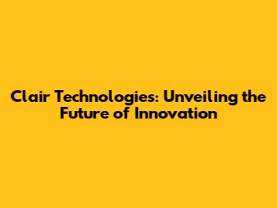 Clair Technologies: Unveiling The Future Of Innovation