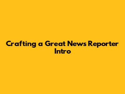 Crafting A Great News Reporter Intro