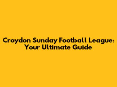 Croydon Sunday Football League: Your Ultimate Guide