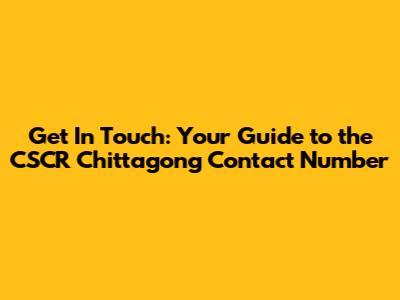 CSCR Chittagong Contact Number: Get In Touch