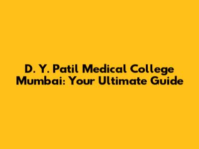 D. Y. Patil Medical College Mumbai: A Comprehensive Guide