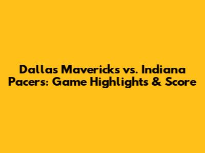 Dallas Mavericks Vs. Indiana Pacers: Game Highlights & Score