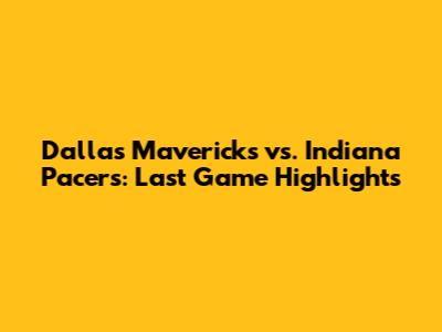 Dallas Mavericks Vs. Indiana Pacers: Last Game Highlights