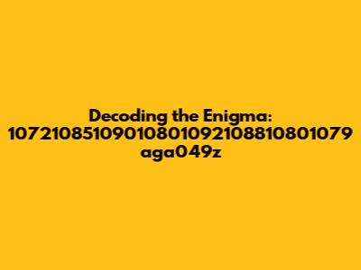 Let’s dissect this string a bit further. "10721085109010801092108810801079 aga049z" can be viewed as two parts: a series of numbers followed by a combination of letters and numbers.
