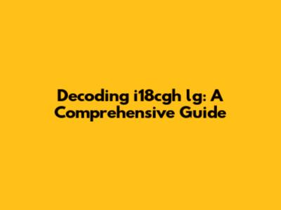 Decoding I18cgh Lg: A Comprehensive Guide