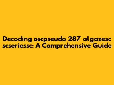 Decoding Oscpseudo 287 Algazesc Scseriessc: A Comprehensive Guide