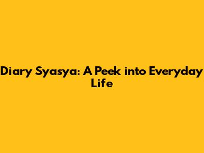 Diary Syasya: A Peek Into Everyday Life