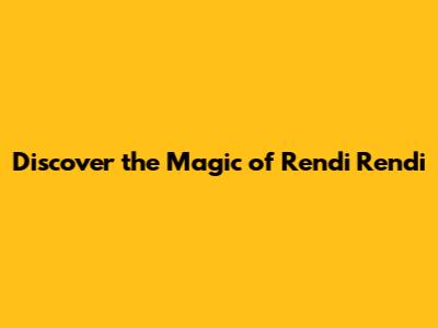 Discover The Magic Of Rendi Rendi