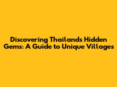 Discovering Thailand's Hidden Gems: A Guide To Unique Villages