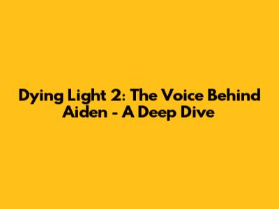 Dying Light 2: Aiden's Voice Actor - Who Brings Him To Life?