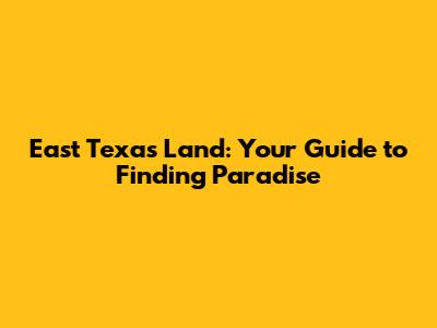 East Texas Land: Your Guide To Finding Paradise