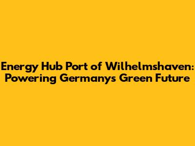 Energy Hub Port Of Wilhelmshaven: Powering Germany's Green Future