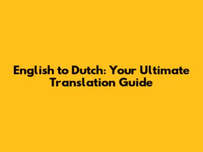 English To Dutch: Your Ultimate Translation Guide