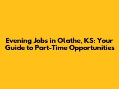 Hey there, job seekers! If you're looking for part-time evening jobs in Olathe, KS, you've landed in the right spot. Finding a gig that fits your schedule and offers a decent income can feel like searching for a needle in a haystack, right? But don't worry, we're here to help you navigate the job market and uncover some fantastic opportunities. Whether you're a student, a parent, or someone just looking to supplement your income, the evening shift can be a real game-changer. It offers flexibility, allows you to balance work with other commitments, and often comes with a nice hourly rate to boot. So, let's dive into the world of evening jobs in Olathe, KS, and explore the different options available, what to expect, and how to land that perfect part-time role. We'll cover everything from retail and food service to more specialized positions. Get ready to unlock the secrets to securing a great part-time evening job in Olathe, KS!