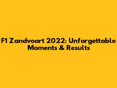 F1 Zandvoort 2022: Unforgettable Moments & Results
