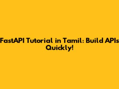 FastAPI Tutorial In Tamil: Build APIs Quickly!