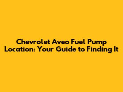 Finding Your Chevrolet Aveo Fuel Pump: A Quick Guide
