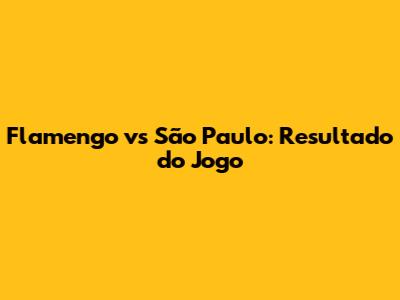Flamengo Vs São Paulo: Resultado Do Jogo