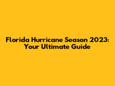 Florida Hurricane Season 2023: What You Need To Know