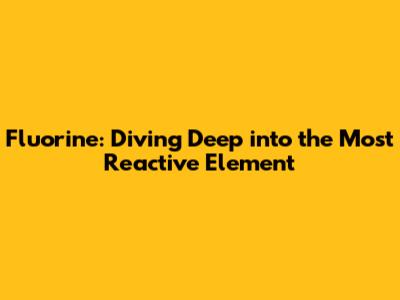 Fluorine: The Most Reactive Element Explained