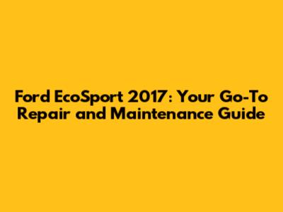 Ford EcoSport 2017: Ultimate Repair & Maintenance Guide