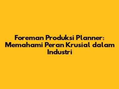Apa Itu Foreman Produksi Planner?