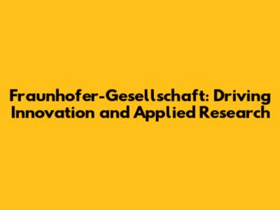 Fraunhofer-Gesellschaft: Innovation And Research