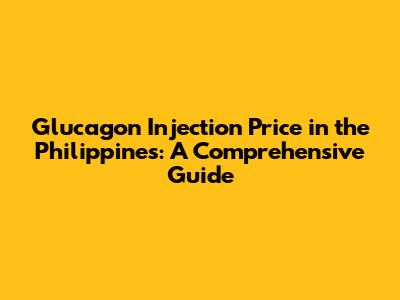 Glucagon Injection Price In The Philippines: A Comprehensive Guide