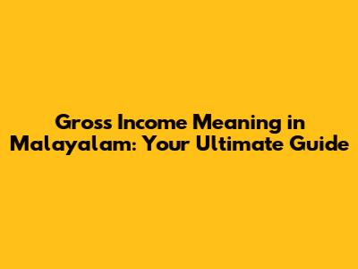 Why Understanding Gross Income Matters: Malayalam Perspective