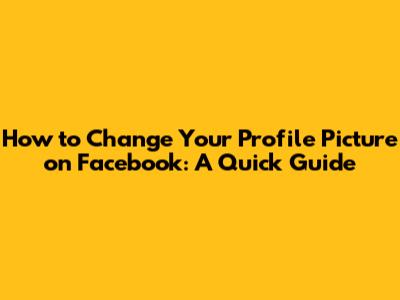 How To Change Your Profile Picture On Facebook: A Quick Guide