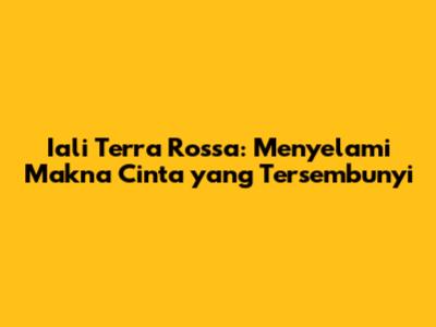 Biarkan Iali Terra Rossa menginspirasi Anda untuk mencintai lebih dalam, peduli lebih banyak, dan menjadi lebih baik. Mari kita jadikan cinta sebagai kekuatan pendorong dalam hidup kita, memberikan makna, kebahagiaan, dan tujuan yang tak ternilai harganya. Selamat menjelajahi keindahan iali terra rossa terjemahan cinta dalam perjalanan hidup Anda!