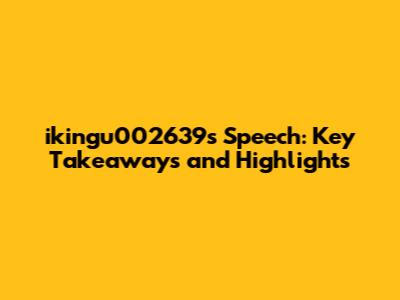 Ikingu002639's Speech: Key Takeaways And Highlights