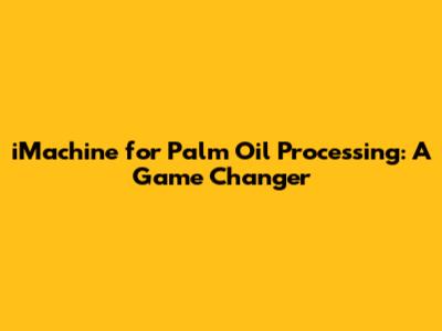 IMachine: Revolutionizing Palm Oil Processing